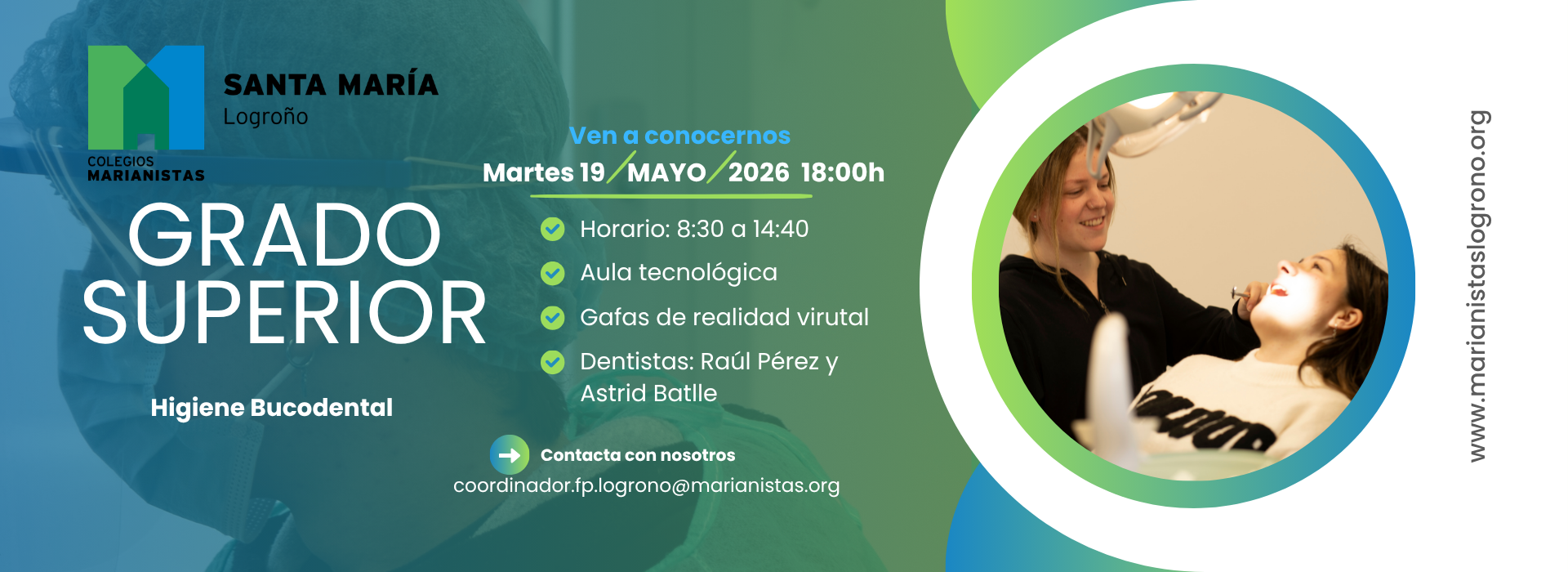 Arrancamos en septiembre de 2025 con nuestro Grado Superior en Higiene Bucodental, que es único en Logroño.